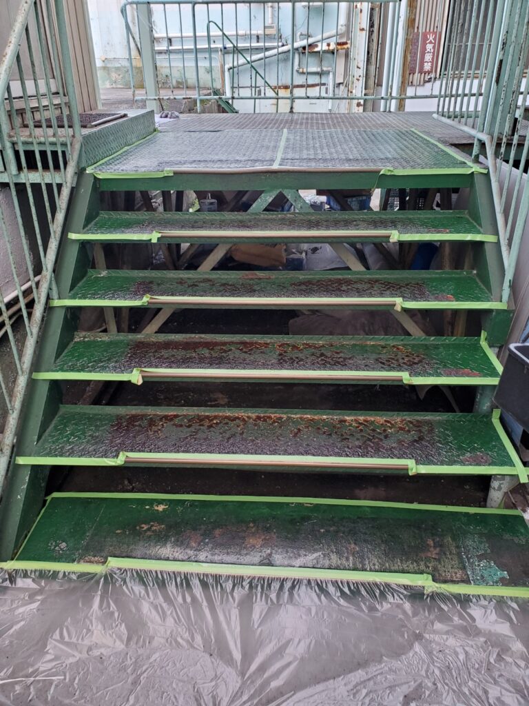 愛知県内 縞鋼板 階段 踊り場